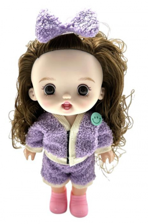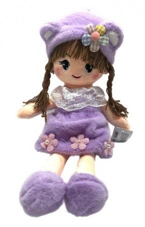 Кукла (мягкая) в сиреневой меховой шляпке и платье 45см / FLH-48