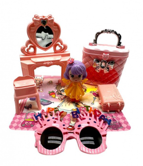 Кукла (пласт.) + мебель + аксессуары 26*22см / пакет 6688-1