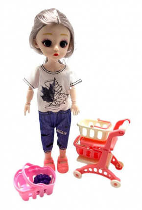Кукла (шарнирная) + тележка + аксессуары 22*21см / пакет 2028-21
