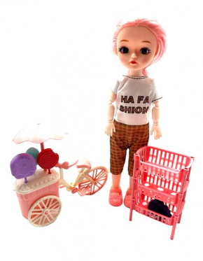 Кукла (шарнирная) + тележка с десертами + аксессуары 30*22см / пакет…