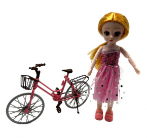Кукла (шарнирная) в нарядном платье + велосипед 30*22см / пакет 2028-26
