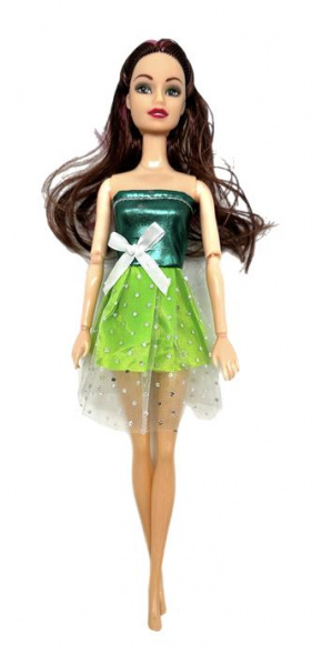 Кукла шарнир.руки в зеленом платье 32*8см / коробка 2015-5