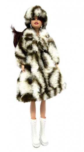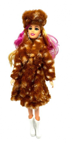 Кукла (шарнирная) в бело-коричневой меховой шубке и шапке 33*16см/короб.…