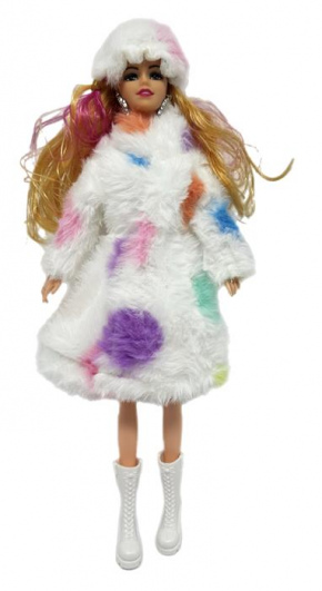 Кукла (шарнирная) в бело-розовой меховой шубке и шапке 33*16см / коробка…