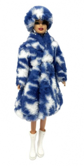 Кукла (шарнирная) в сине-белой меховой шубке и шапке 33*16см / коробка…