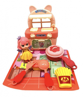 Кукла (пласт.) + кухонная плита + аксессуары 25*21см/блистер 8018-10
