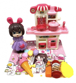 Кукла (пласт.) + кухонный гарнитур + аксессуары 26*22см / блистер 8017-40