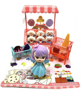 Кукла (пласт.) + ларек с конд. изделиями + аксессуары 26*23см / блистер…