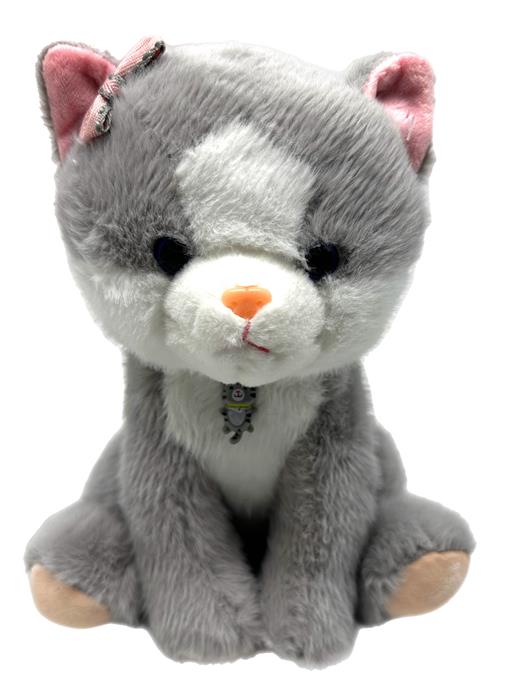 Кошка с бантиком серая с подвеской котик 22см FMM-25 АКЦИЯ! СКИДКА 10%