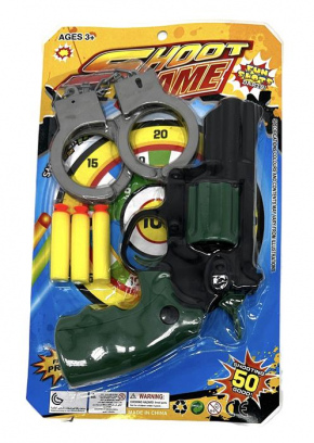 Набор Полицейского (пистолет,3 присоски, наручники,жетон) 37*21см / блистер…