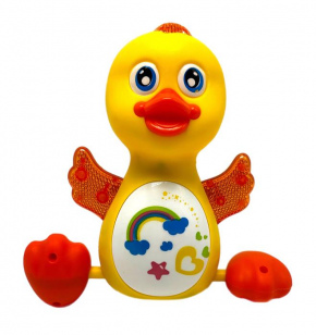 ,Утенок (на батар.) (свет,звук,движ.) на веревочке 18*15см / пакет 050-1
