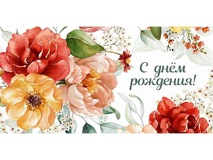 Конверт д/денег С Днем рождения! Акварельн.цветы (зол.сер.) (вып.по 2шт.)ЗСС-0053
