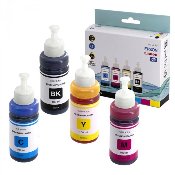 Набор Чернил д/принтера Alingar 100мл 4 цвета на водной основе (совместимы с Epson/HP/Canon AL12421