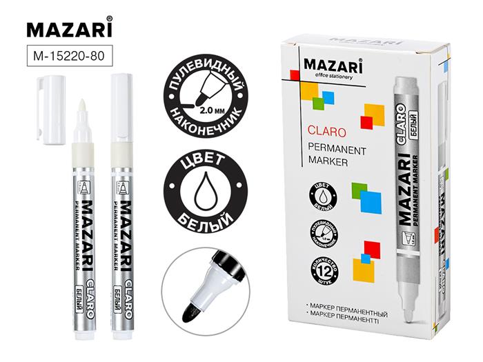 Маркер белый Mazari Claro перманент пулевидный 1-2мм M-15220-80