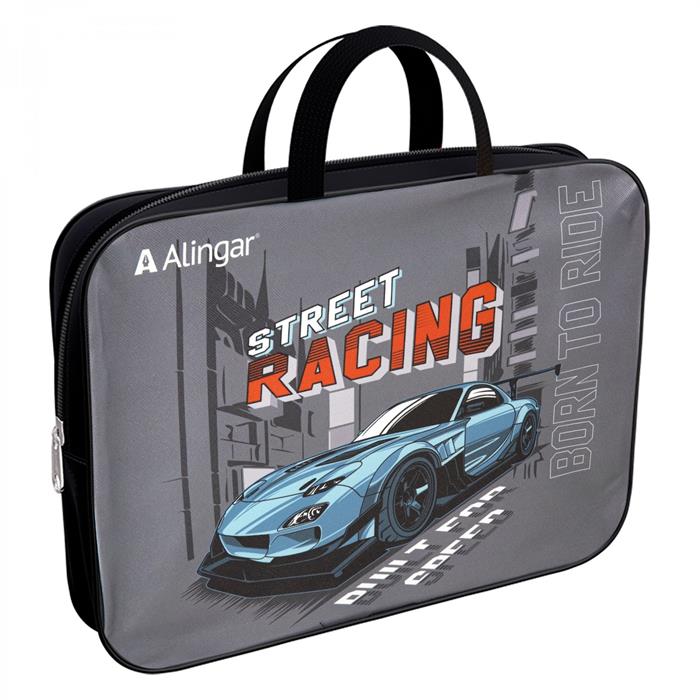 Папка с ручками А4 Alingar Гонки пластик на молнии AL11395