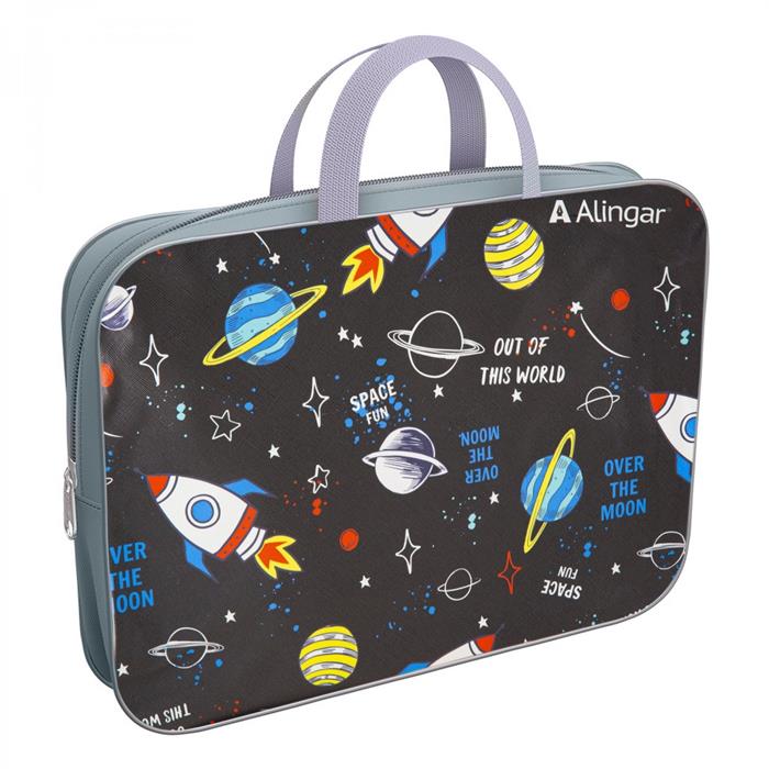 Папка с ручками А4 Alingar Среди планет пластик на молнии AL11398