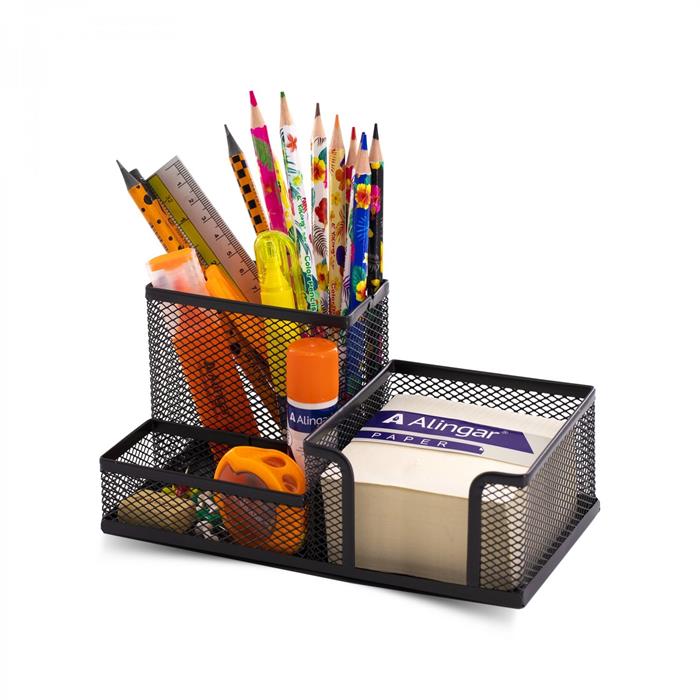 Подставка-органайзер д/канцтоваров 20*10см 3 отделения черная AL11381