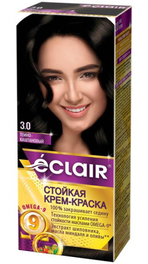 ECLAIR омега-9 Крем-краска стойкая д/волос 3,0 темно-каштановый