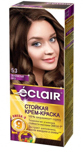 ECLAIR омега-9 Крем-краска стойкая д/волос 5,3 золотистый орех
