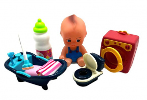 Пупс + стиральная машина + ванночка + аксессуары 21*20см / пакет 669-226D1