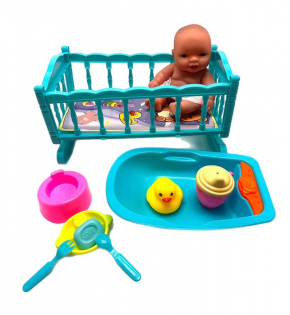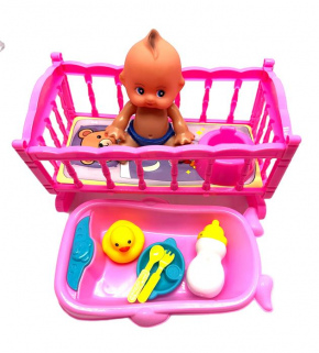 Пупс + кроватка + ванночка + аксессуары 25*27см / пакет 669-700В2