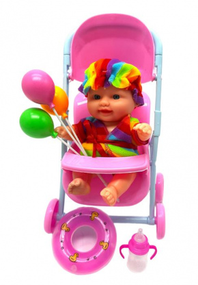 Кукла-пупс мальчик в коляске с аксессуарами 27*16см / сетка ZY1-5F