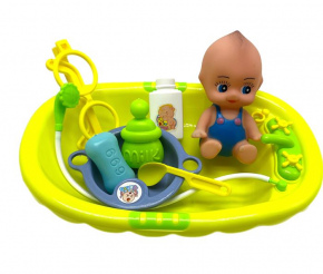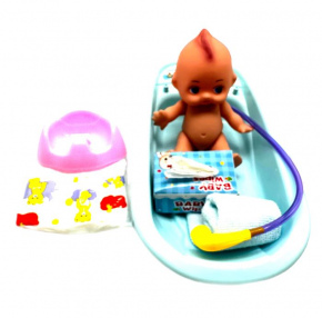 Пупс + ванночка + аксессуары 14*13см/ пакет SM1055