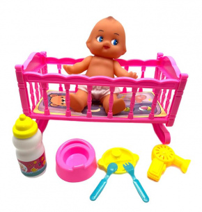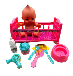 Пупс + кроватка + аксессуары 25*28см / пакет 669-700D