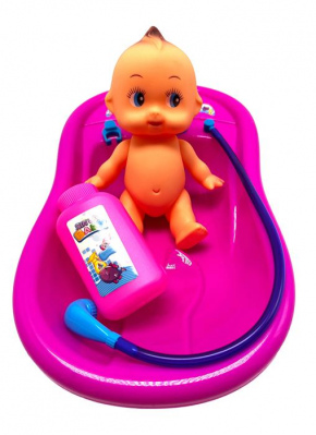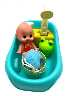 Пупс + ванночка + аксессуары 27*22см / блистер 669-559А