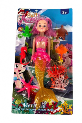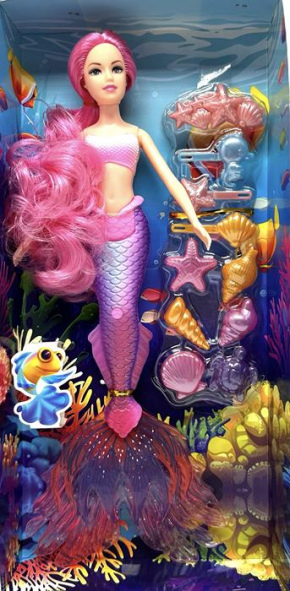 Русалка с розовыми волосами + аксессуары 38*18см / коробка 388B6