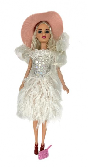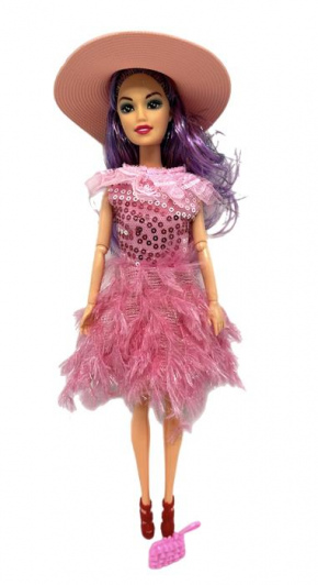 Кукла шарнир.руки в платье с розовой бахромой + шляпка 32*11см /коробка…
