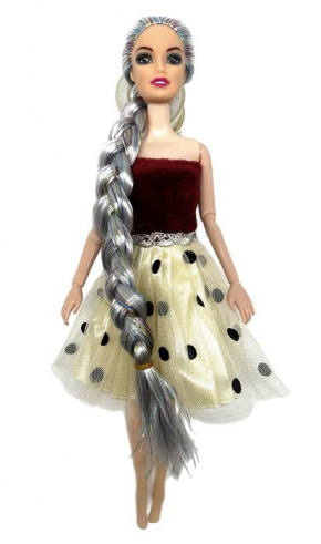 Кукла шарнир.руки платье бордовое/горох 32*10см / коробка Y018A14