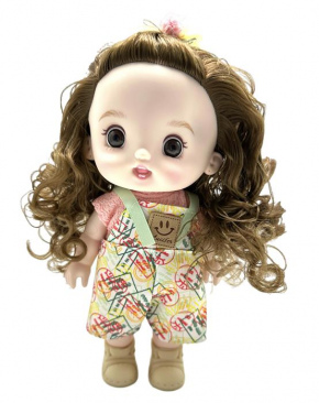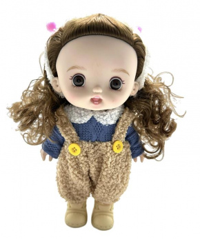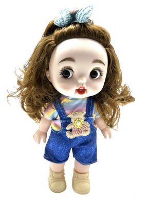 Кукла в джинсовом комбинезоне и с бантиком 28см / коробка 525-3