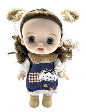 Кукла в платье с джинсовым принтом с повязкой 28см / пакет 525-1