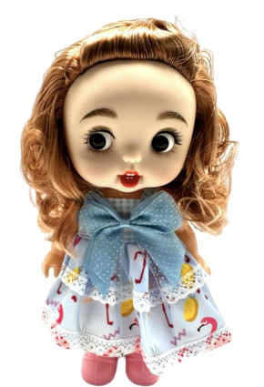 Кукла в длинном платье голубом с фламинго 28см / пакет 525-4