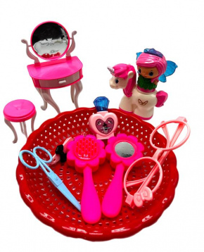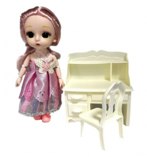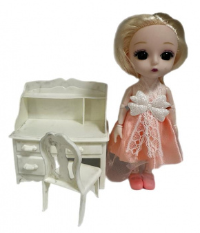 Кукла (шарнирная.) + туалетный столик + аксессуары 20*18см / пакет 2022-К