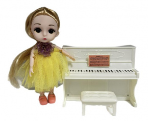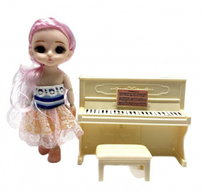 Кукла (шарнирная.) + пианино + аксессуары 20*18см / пакет 2022-К