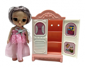 Кукла (шарнирная.) + шкаф + аксессуары 20*18см / пакет 2022-К