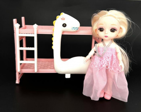 Кукла (шарнирная.) + кровать (разборн.) + аксессуары 20*18см / пакет…