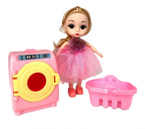 Кукла (шарнирная) с косичками + стир.машина + аксессуары 19*17см / блистер…