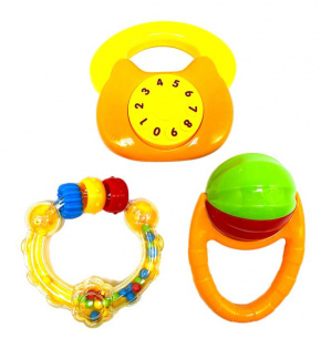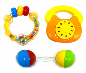 Погремушка 3шт (телефон,маракас с прорезывателями) 15*14см / пакет K225D359