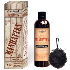 НАБОР муж. COMPLIMENT Manhatten №1750 (гель д/тела и волос+мочалка)
