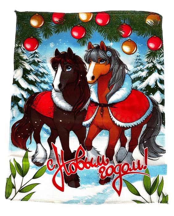 СИМВОЛ ГОДА 2026 Салфетка д/кухни вафел. 45*60см Кони в накидках Нов.год (мин.10шт)