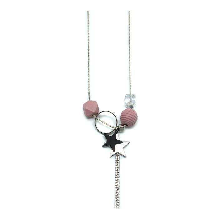 Колье Подвеска Звездочки из пластика+стразы+кольцо Розовый