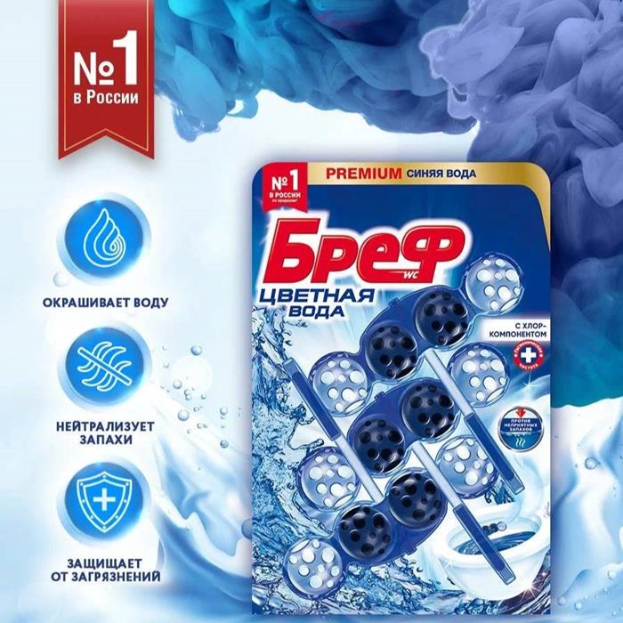 БРЕФ Освежитель д/унитаза Тройные Сила Актив Цветная вода Хлор-компонент 3*50г
