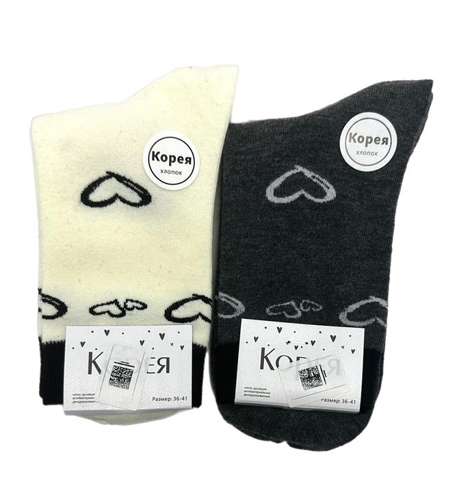 Носки Жен. Р-р 36-41 КОРЕЯ (88% хлопок,10% полиам.,2% лайкра)цв.ассорт. B156-1 M~