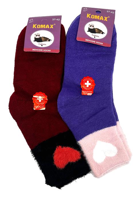 Носки Жен. Р-р 37-42 теплые KOMAX (30%соболь,60% шерсть,10%полиамид) цв/ассорт.Сердце 3086-3