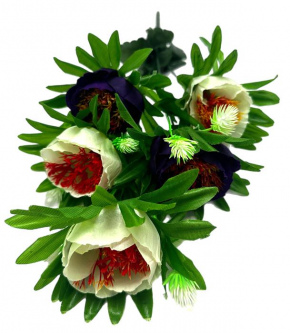 Букет Пион искусственный Двухцв. 5гол. 50см бел+фиолет. 24-5-1 (вып.по…