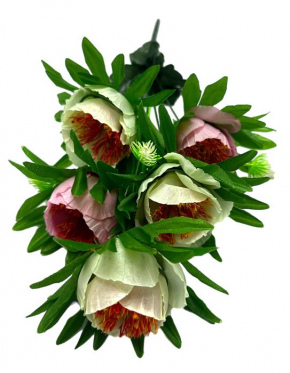 Букет Пион искусственный 7гол. 53см розовый+бел. BUK2-61