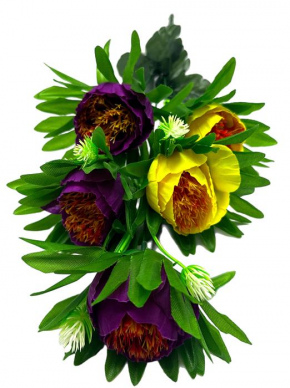 Букет Пион искусственный Двухцв. 5гол. 50см желт+фиолет. 24-5-1 (вып.по…